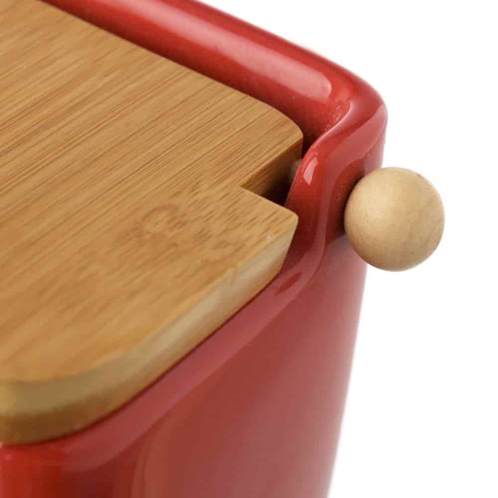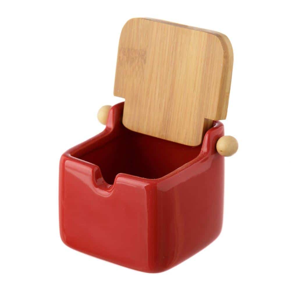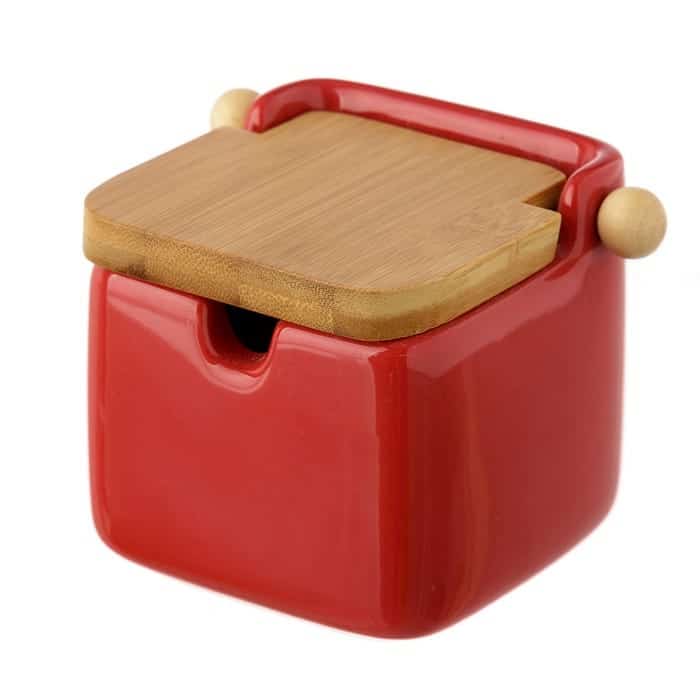• Saleros o azucarero de cerámica de cocina con tapa de bambú.
