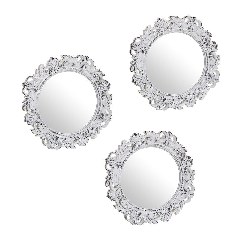 Set 3 Espejos Estilo Barroco Redondo con Marco PVC 25x2x25cm - Espejo de Cristal, decorativo, para Pared