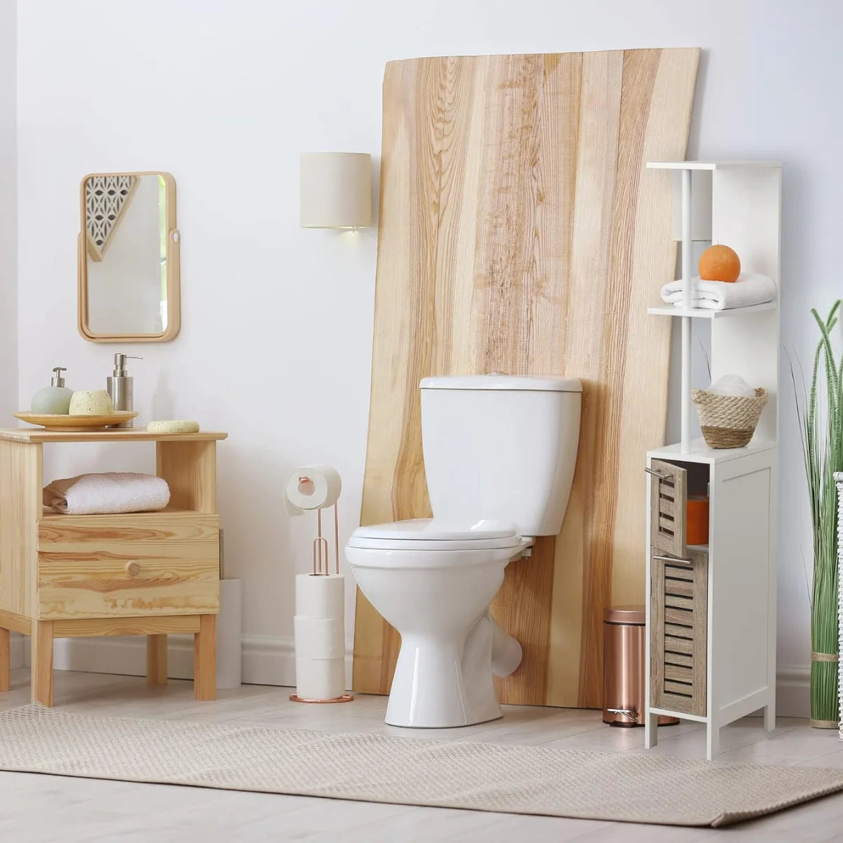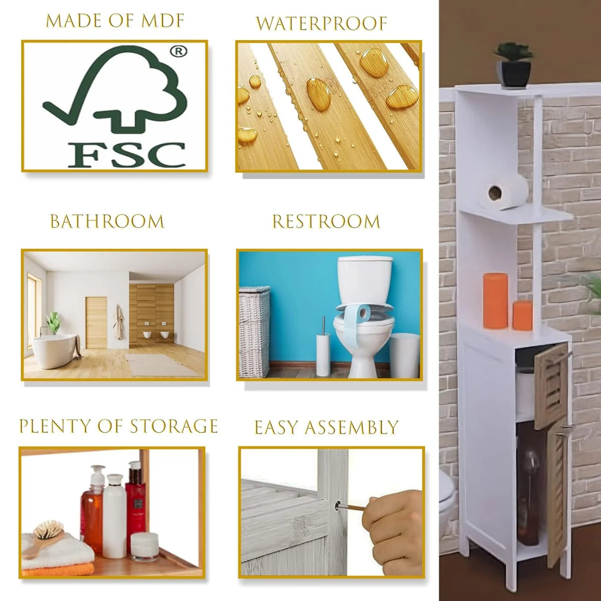 Mueble Columna para Baño 'Stockholm' 2 Puertas + Estante Interior | Mueble de Baño para Almacenaje, Especial Espacios Pequeños y Reducidos, Resistente al Agua y Humedad 30x18x83cm