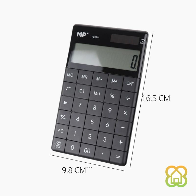 Calculadora negra de 12 dígitos con pantalla extra grande. De teclado cómodo.