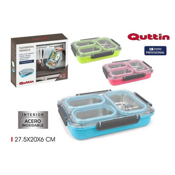 Si te gusta cuidar cada detalle de tu cocina y estar a la última en productos que te harán la vida más fácil, compra Fiambrera térmica 3 departamentos Quttin 3 colores surt. al mejor precio.