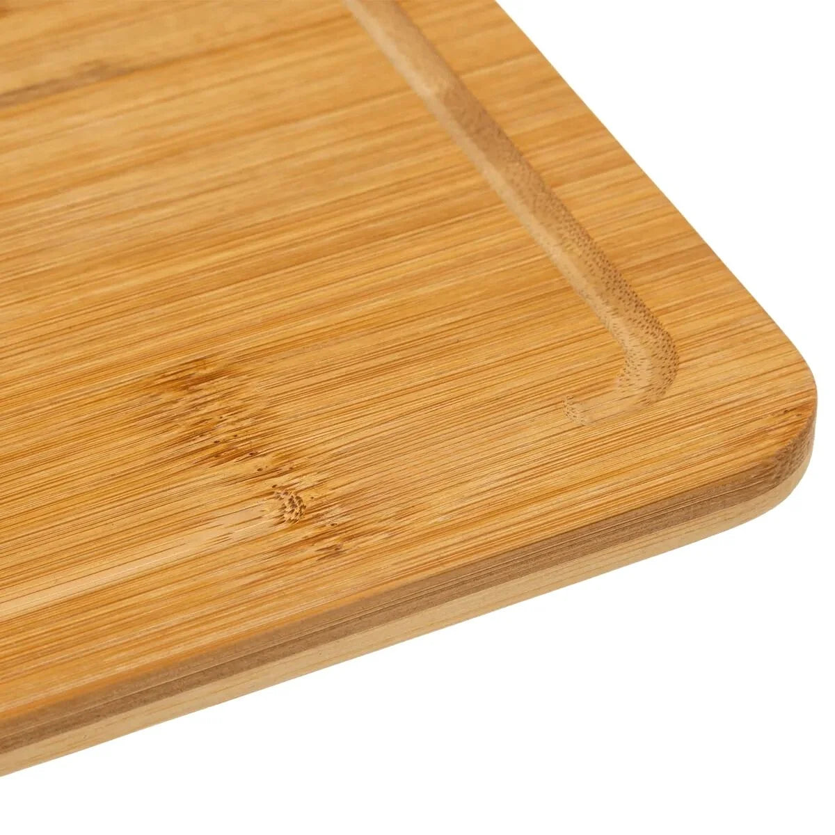 Kit de Cocina 4 Piezas: Tabla de Bambú con Cuchillos de Acero Inoxidable