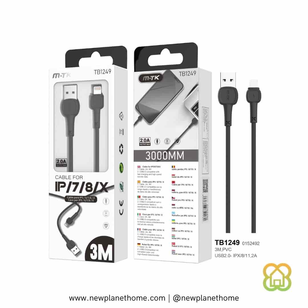 Cable Lightning de alta calidad extralargo de 3 metros. Disponible en: negro y blanco.