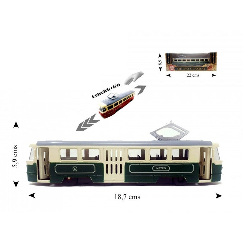 Este Metro Clásico Metálico destaca por sus puertas abatibles, lo que te permite abrir y cerrar las puertas para simular el embarque y desembarque de pasajeros. Además, cuenta con una función de movimiento basada en retrofricción, lo que significa que puedes empujarlo hacia adelante y ver cómo se desplaza sin necesidad de pilas o baterías.