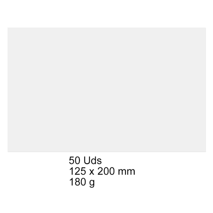Paquete de 50 fichas de cartulina lisas. Gramaje de 180 g/m². Ideal para organizar proyectos, crear fichas para memorizar, estudiar, hacer listas y más.