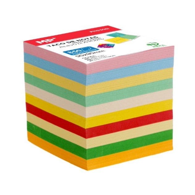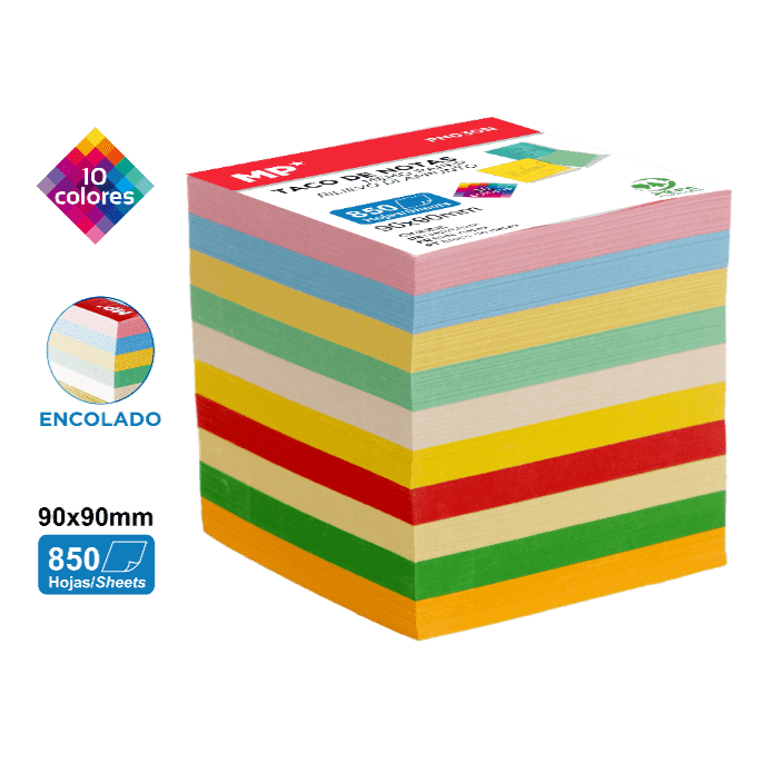 Taco de 400 notas cuadradas de 90 x 90 mm. En 10 colores surtidos. Guárdalo cerca para poder apuntar las cosas más importantes de manera rápida. Útiles para trabajos escolares, de oficina y para tener en casa. No te quedes sin notas cuando más las necesites.