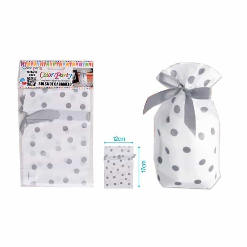 Bolsa caramelo topos plateados 12x17cm 3pcs