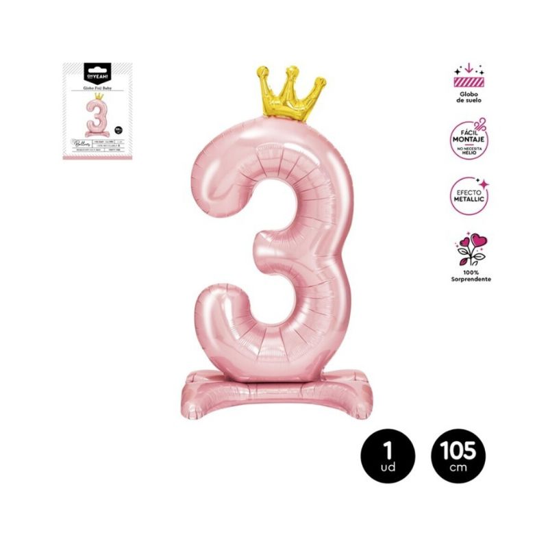 ❤【Juego de globo en forma de número 3】 El juego de un número color pastel y metalizado, junto a una corona y una base hace que sea ideal para cualquier celebración. Su altura máxima es de 105cm y es de rápido montaje.