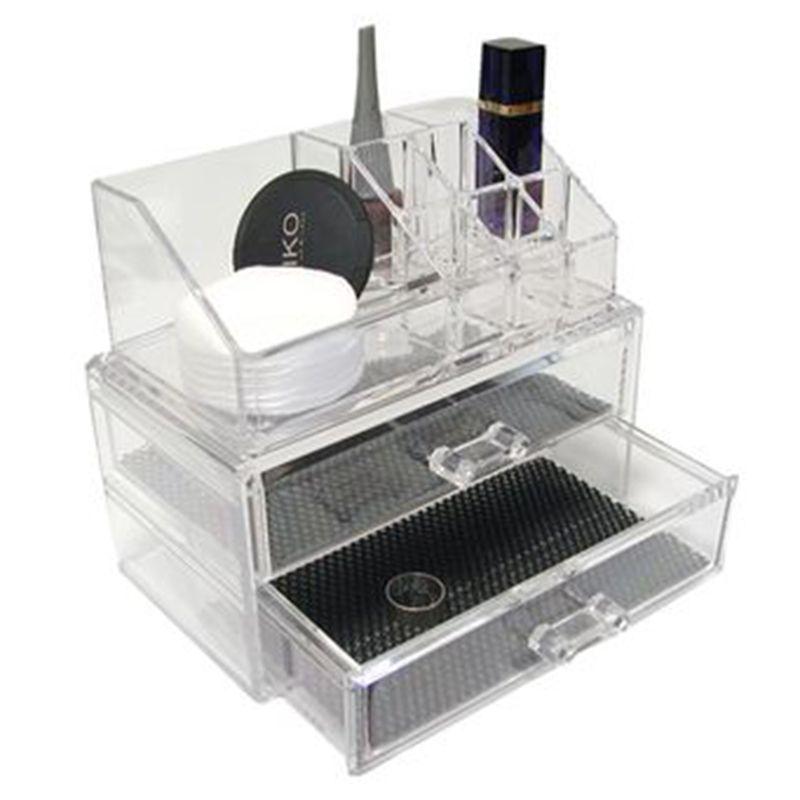 • El organizador de cosméticos acrílicos de 2 cajones es la solución de almacenamiento ideal para almacenar su maquillaje y joyas en un solo lugar de fácil acceso.