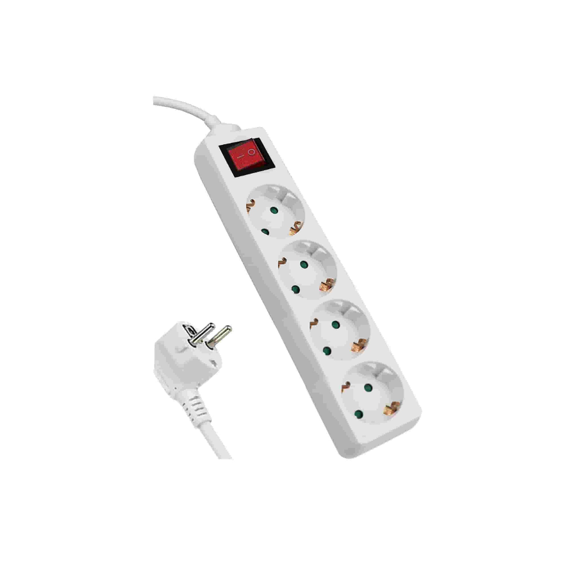 Regleta de 4 enchufes con/sin interruptor,cable disponible desde medidas de 1.5 metros a 5 metros a elegir. Enchufe Schuko de 16 A. Producto excelente de alta calidad elaborado con un material de PVC, resistente al calor y los golpes. Color blanco y negro.