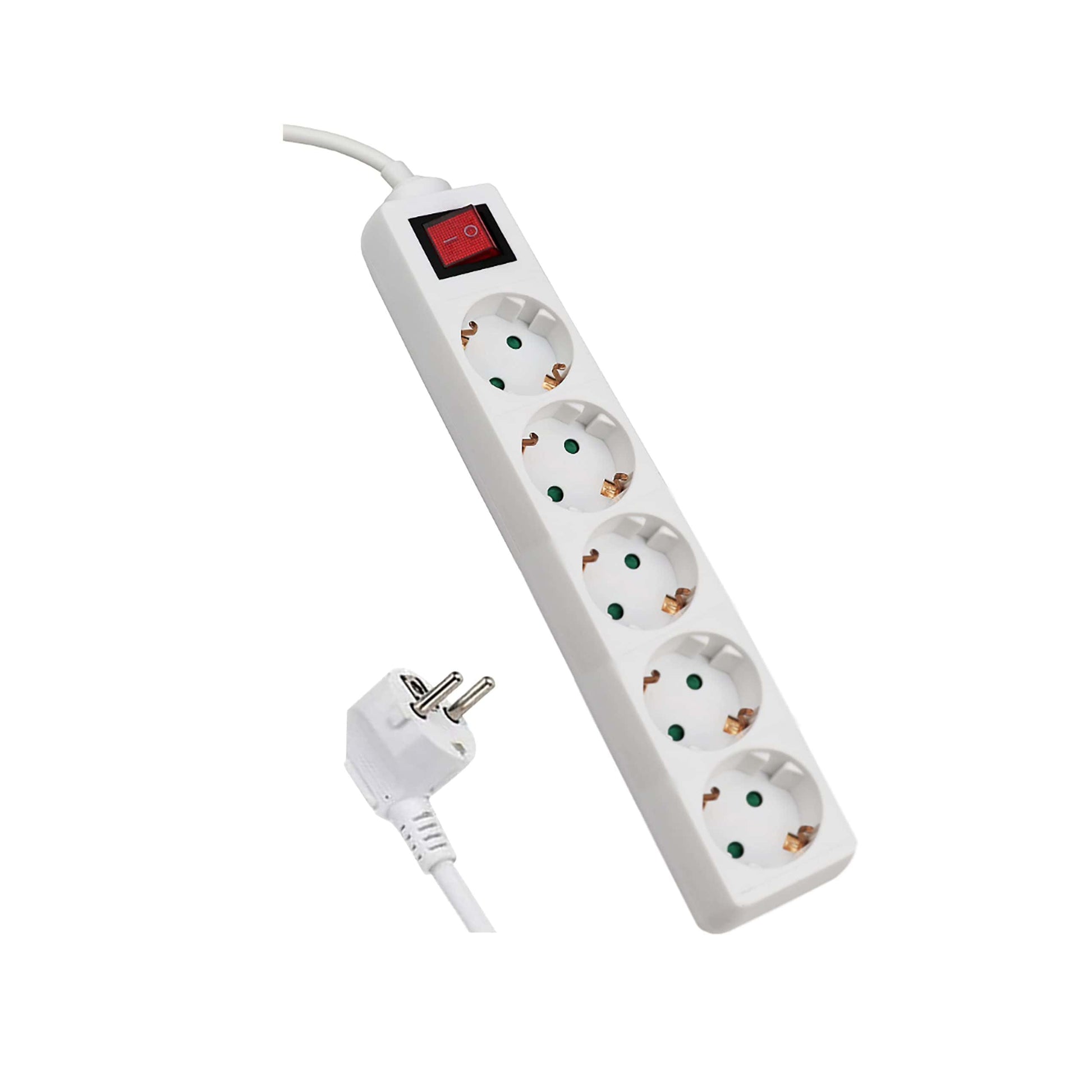 Regleta de 5 enchufes con/sin interruptor,cable disponible desde medidas de 1.5 metros a 5 metros a elegir. Enchufe Schuko de 16 A. Producto excelente de alta calidad elaborado con un material de PVC, resistente al calor y los golpes. Color blanco y negro.