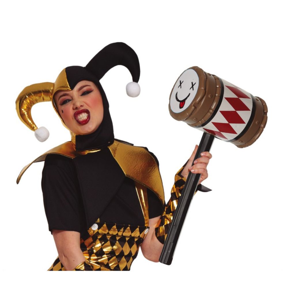 Dale un toque rebelde y divertido a tu disfraz con este Mazo de Payaso de 79 cm, el accesorio perfecto para complementar tu look de villana glamurosa estilo Harley Quinn. Con un diseño llamativo, este mazo inflable combina colores vivos y una expresión cómica para destacar en cualquier fiesta.