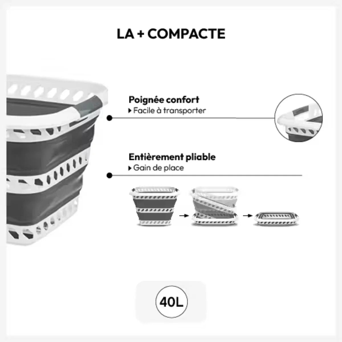 Cesto para la colada Retráctil 40L Flexy - Cesto de la ropa sucia Plegable con Asas y Fácil Transporte, Perfecto para Espacios Reducidos - 48x34x49cm