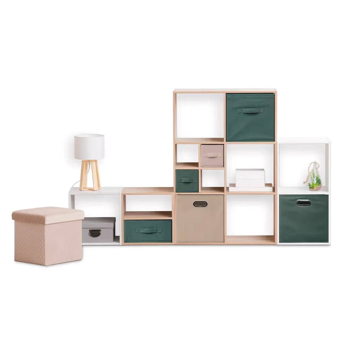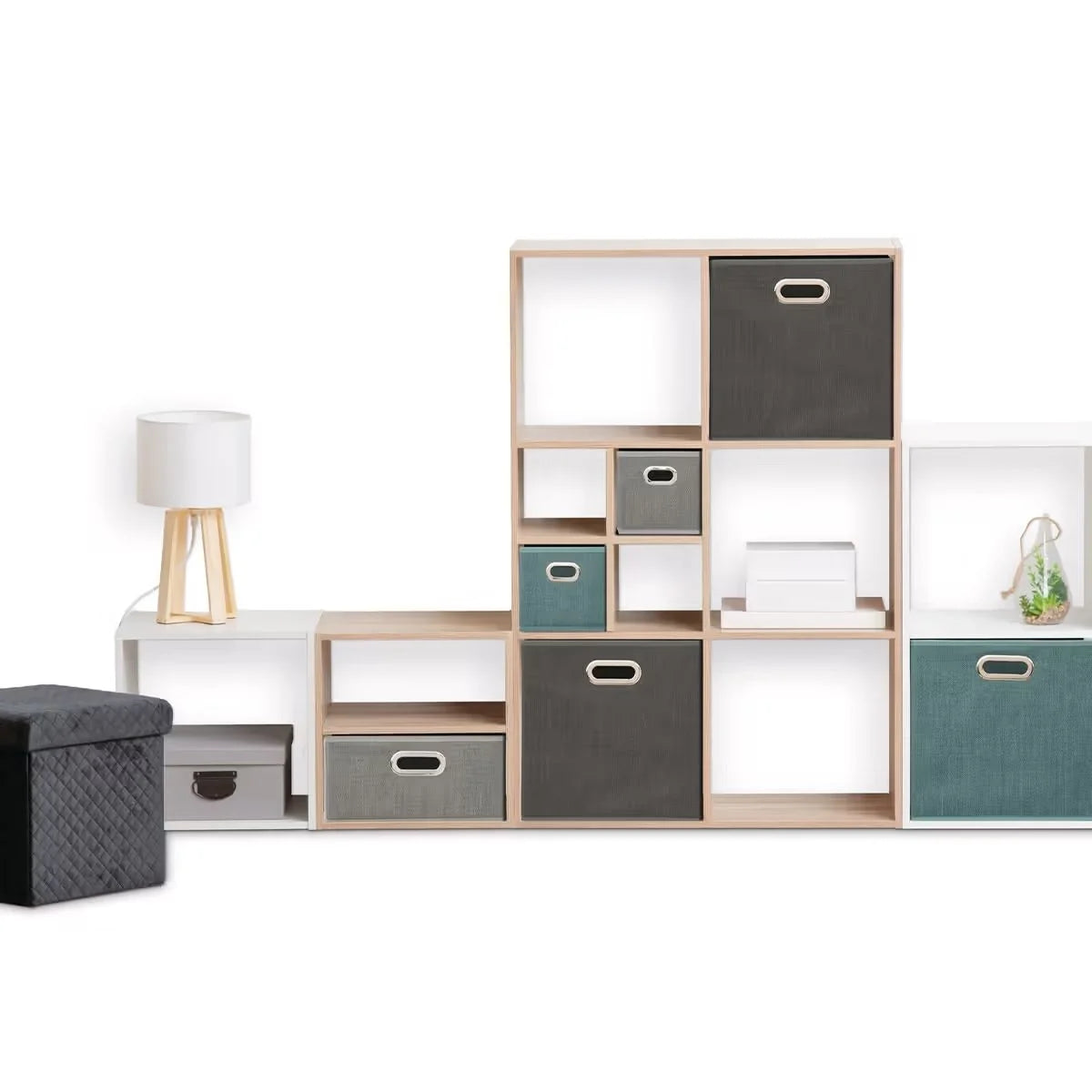 Set 4 Cajas de Almacenamiento de Tela, Plegables con Ojales Metálicos 31x31x31cm, 31x31x15cm, 15x31x15cm | Medidas y Colores a escoger