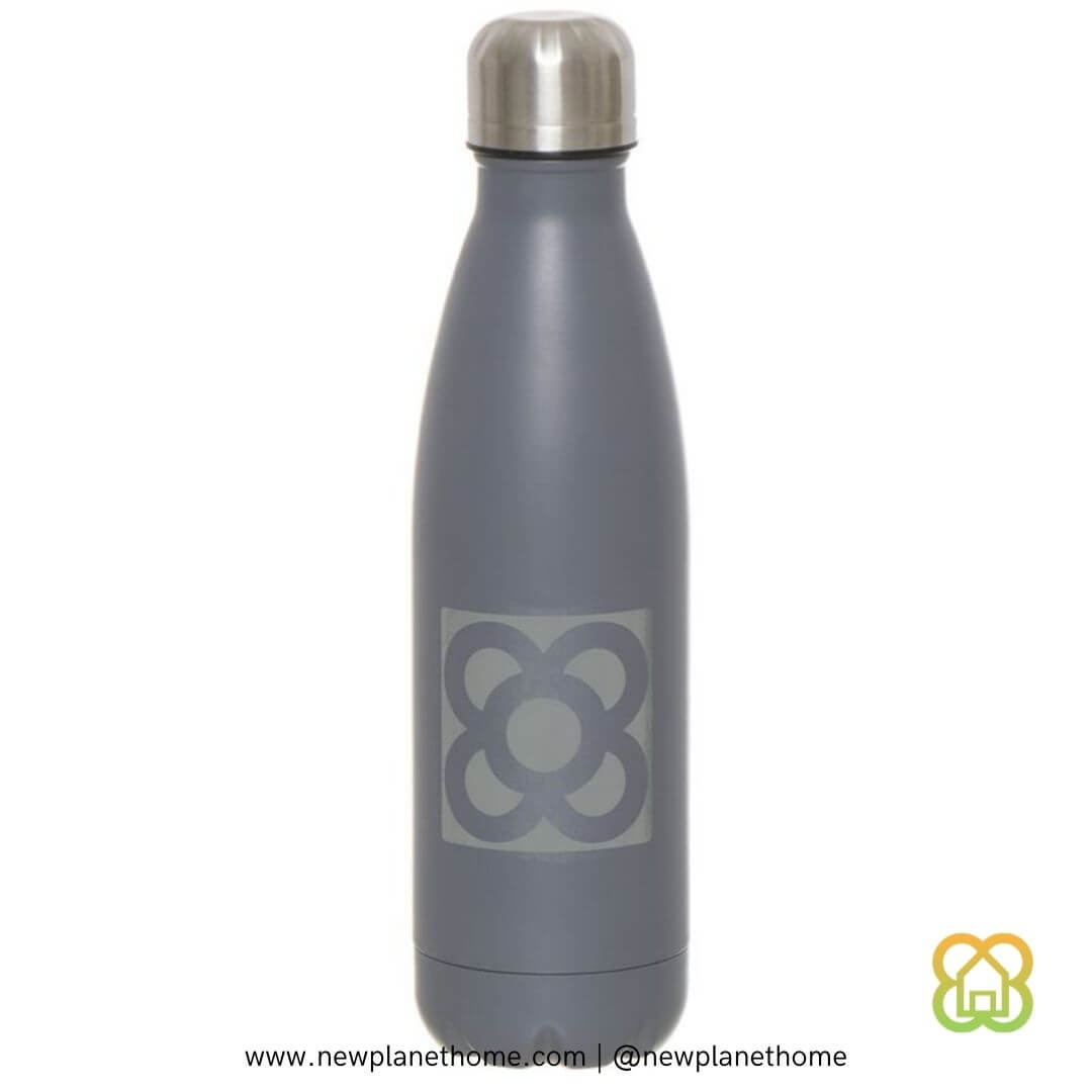 Botella reutilizable fabricada en acero inoxidable. Decorada con el Panot o Flor de Barcelona, baldosa diseñada por Josep Puig i Cadafalch, y que se ha convertido en un símbolo identificativo de la ciudad.