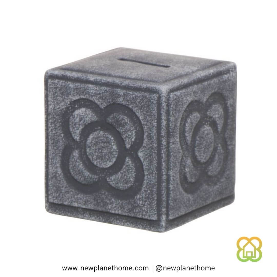 Maceta cúbica fabricada con cerámica gris. Inspirada en la Flor de Barcelona, baldosa diseñada por Josep Puig i Cadafalch, y que se ha convertido en un símbolo identificativo de la ciudad.