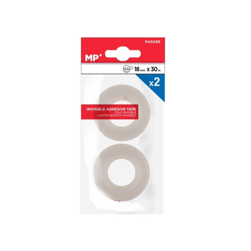 Pack de dos rollos de celo invisible de 18 mm x 30 m. Se puede escribir encima sin ningún problema. De uso universal. Útil para trabajos escolares, manualidades, etc.