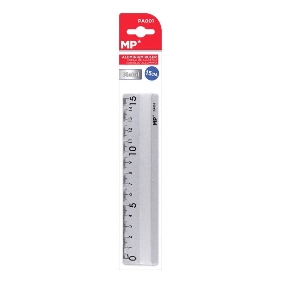 Regla de 15 cm fabricada en aluminio. Dura y resistente.