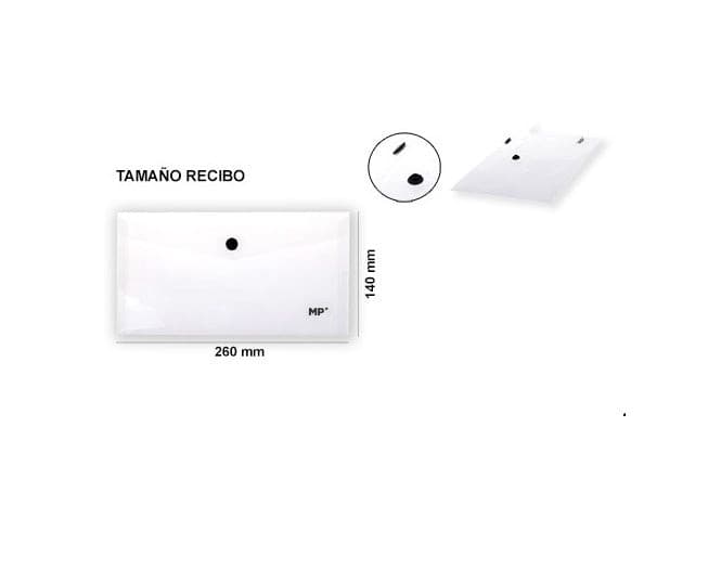 Sobre de plástico transparente de tamaño recibo. Con cierre de botón. Mantén tus recibos bien guardados y a salvo en esta carpeta.