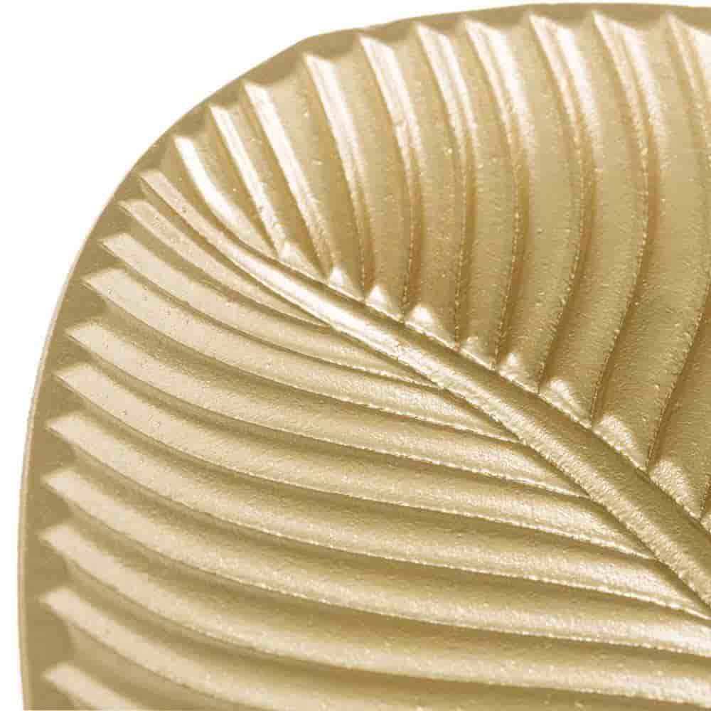• Centro bandeja de mesa de madera con diseño de hoja exótica dorado.