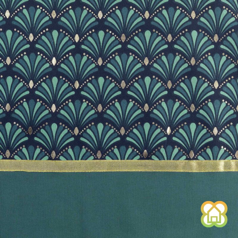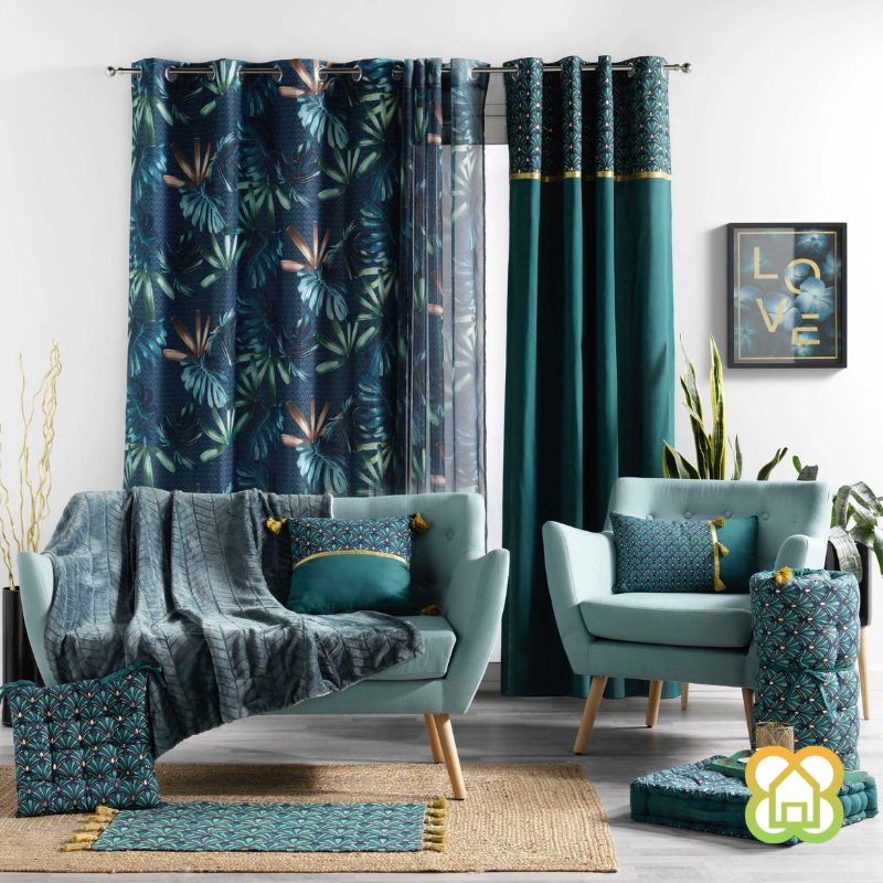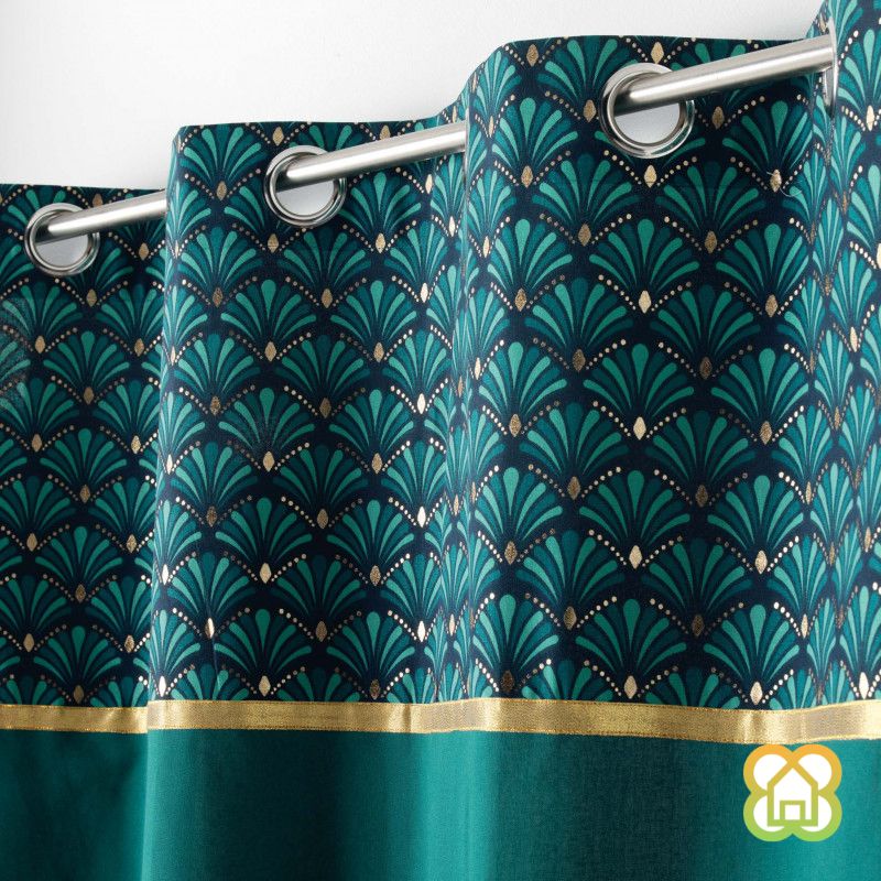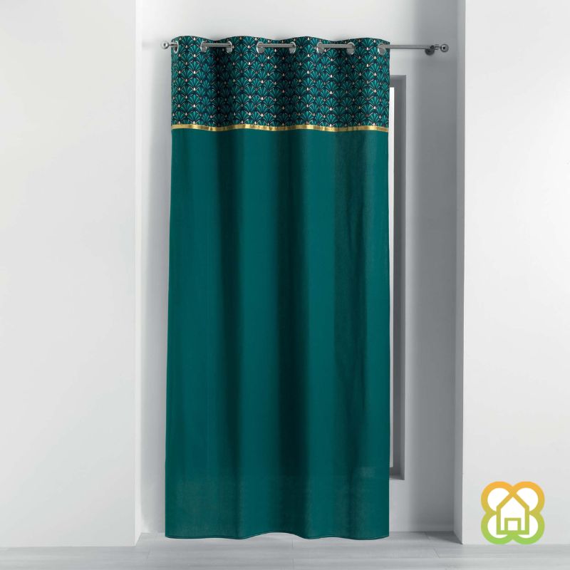 Cortina Con Ojales 140 X 240 Cm Liso Algodón+Top Estampado Metal Azul Ártico.