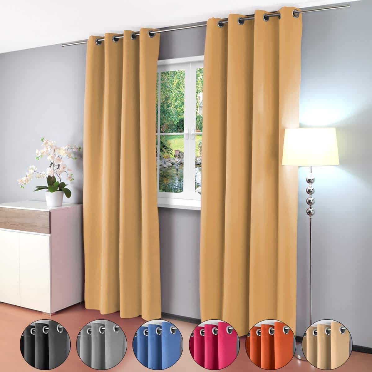 Cortina con ojales de tela aprox. 140 x 260 cm beige