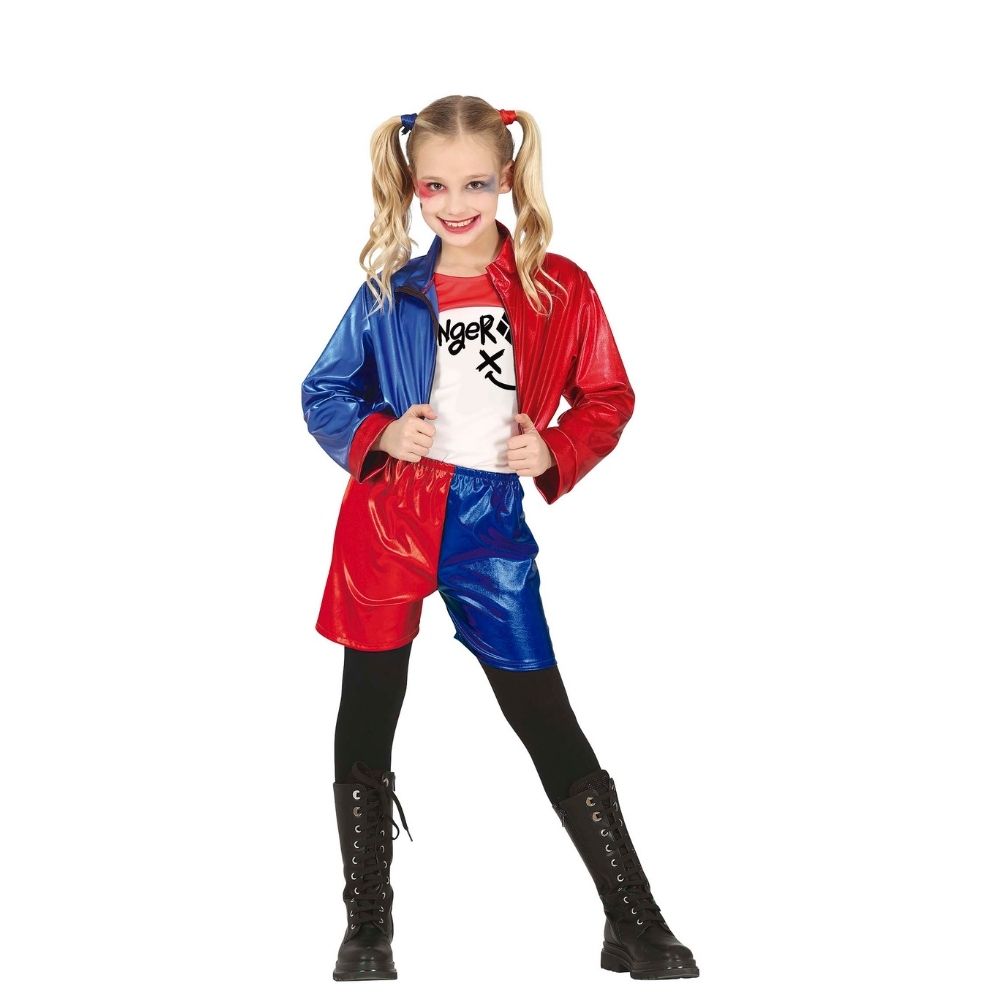 Conviértela en la protagonista de la fiesta con este disfraz de Harley Quinn para niñas, un clásico moderno que no pasa de moda.