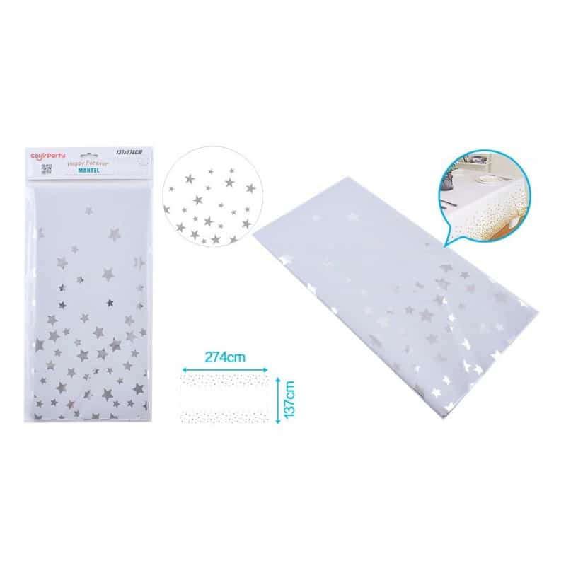 Mantel de plástico con estampado de estrellas plateadas 137x274cm