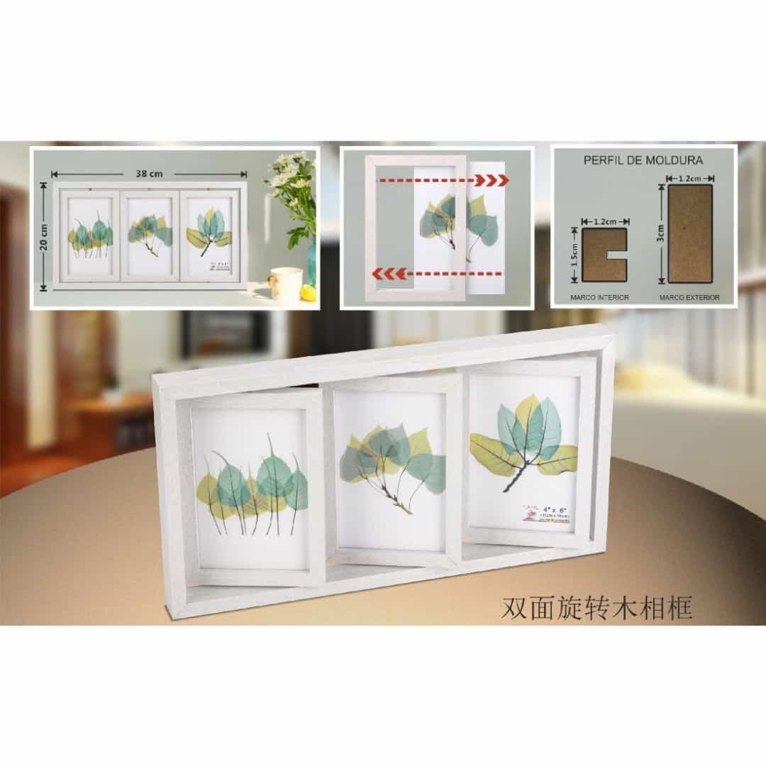 Marco triple giratorio de madera blanca vertical 10x15cm