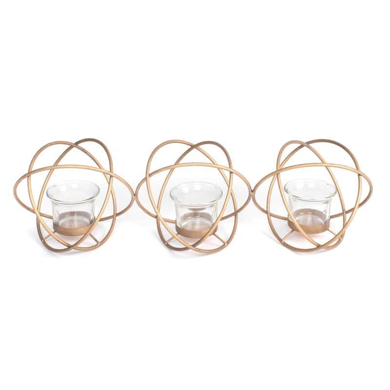 Portavelas triple oro envejecido 42 x 12.5 x 11.5 cm