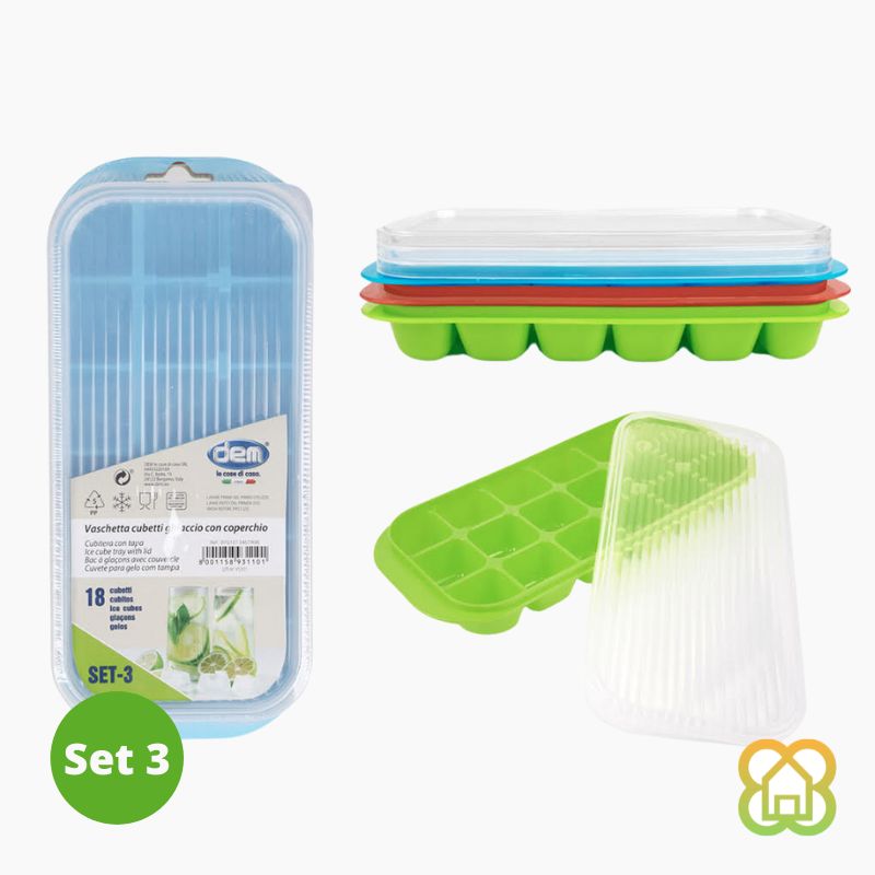 Set 3 Cubiteras con Tapa 18 Cubitos