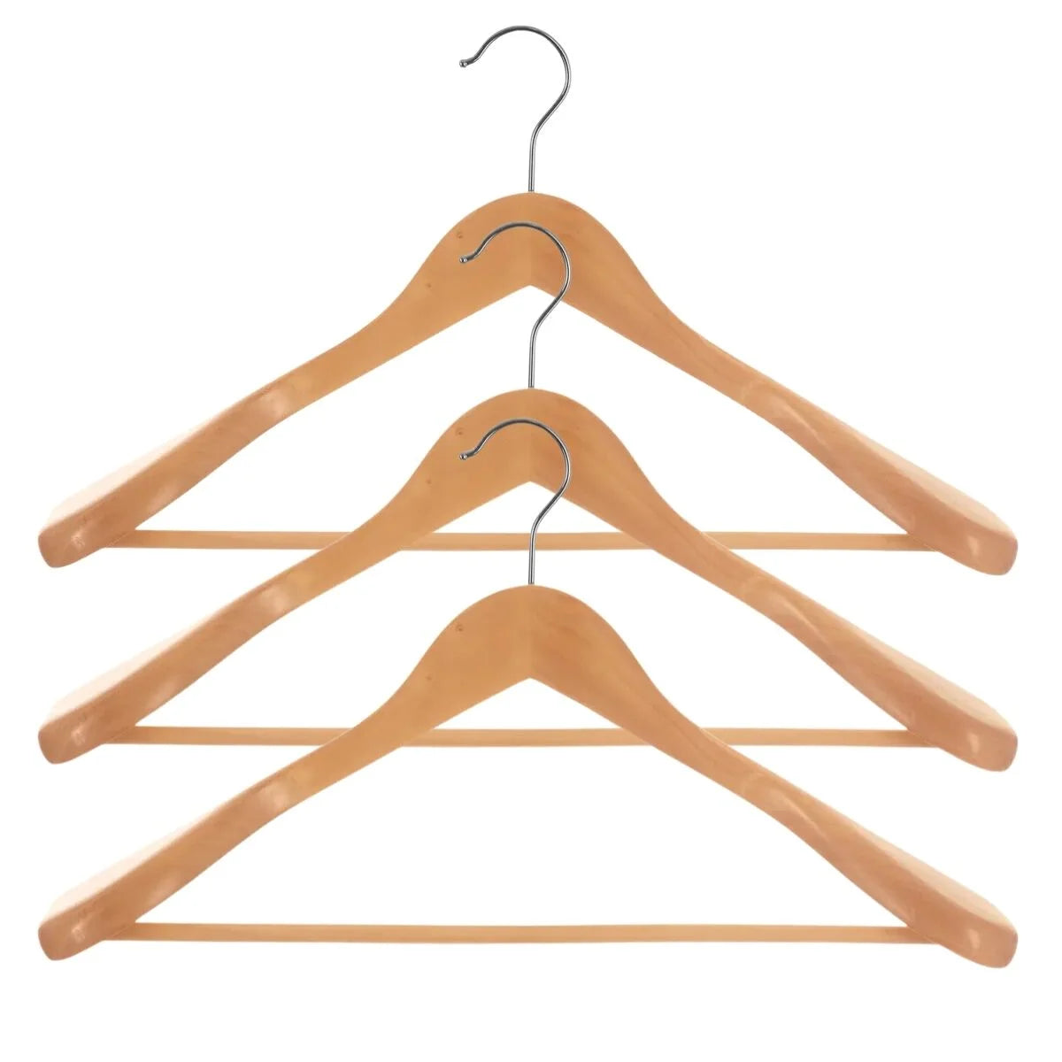Set de 3 Perchas de Bambú Anchas para Trajes - Ideal para Chaquetas y Abrigos