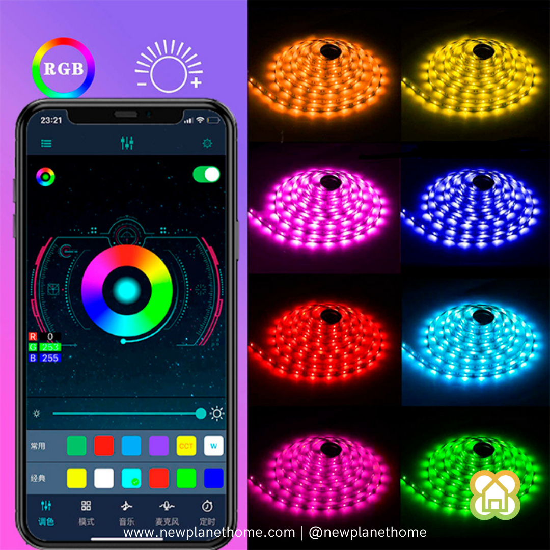 Tira led RGB multicolor 5M con control móvil.